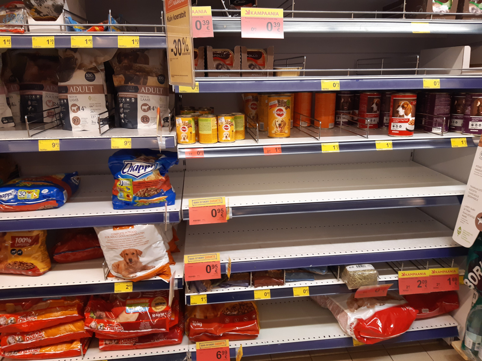 Neljapäeva õhtul valitses Maxima kaupluses ja COOP Elva Kaubakeskuses tavaline tööpäevale omane ostlemine. Võeti igapäevast kraami nagu leiba ja saia, lihatooteid ning piima. Samas andsid poes ringkäiku tehes ostupaanikast märku mõneski kohas haigutavad augud. Hõredalt oli kaupa tangainete ja jahutoodete, samuti tualettpaberi riiulitel. Kui Tartus haaras rahvas ka konserve ja küpsiseid siis Elvas seda kraami ei krabatud. Üllatavalt hõre oli valik koera-ja kassitoidu vallas. Lemmikloomadele oli ette ostetud konserve ja krõbuskeid. Kuudeks neid mõistagi ei varu. Minev kaup on praegu kaerahelbed ja erinevad kornfleiksid. Üllatav oli lihaletis valitsev tühjus. Ära on ostetud pakendatud kana ja lihatooted ning poolfabrikaadid.